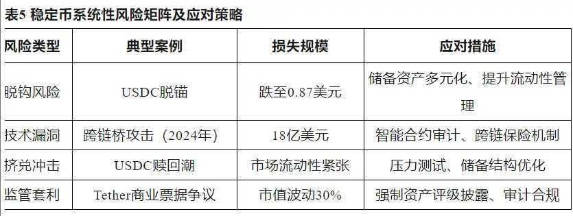 稳定币的主要风险体现在以下四方面:一是脱钩与流动性风险。储备资产若发生贬值或流动性紧张,易引发脱锚与大规模赎回,冲击金融市场。二是技术安全风险。依赖区块链和智能合约的稳定币面临黑客攻击风险。2024年跨链桥漏洞事件造成18亿美元损失,成为严重安全事故。三是挤兑与市场冲击。储备结构不透明时,容易因恐慌或传言触发赎回潮。2023年USDC因硅谷银行事件,一日赎回38亿美元,价格一度跌至0.87美元。四是监管套利。不同国家监管不一,发行方借灰色地带规避监管。Tether曾因储备资产中商业票据比例过高遭多国监管压力。