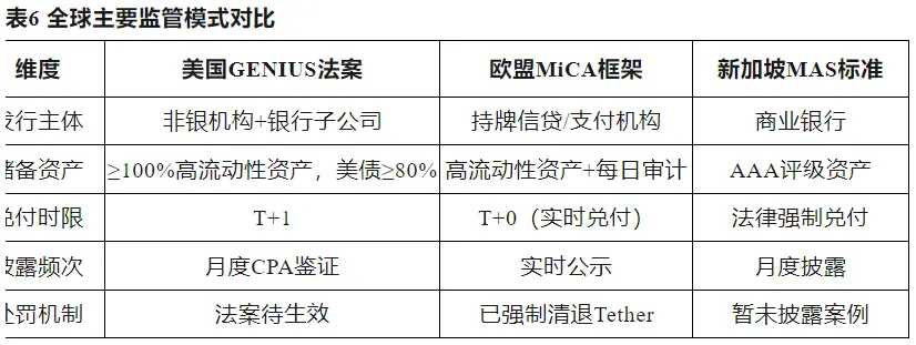新加坡、阿联酋等经济体选择以“监管沙盒+灵活监管”的路径推进稳定币管理。新加坡MAS监管要求稳定币发行方储备资产以AAA评级资产为主,并接受月度信息披露及兑付承诺。重点鼓励金融创新与监管同步推进。阿联酋央行政策批准商业银行试点发行AED稳定币,用于本地零售支付场景,构建本币稳定币在消费支付和小微金融领域应用模型。