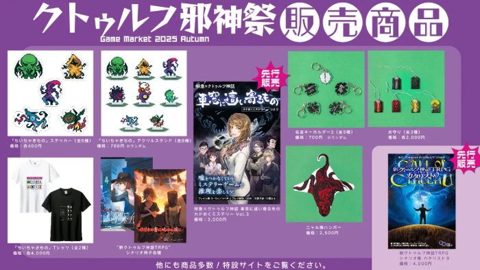 角川游戏今天宣布,主导组织的桌面类型游戏、周边活动展会《游戏市场2025秋》主题为“克苏鲁邪神祭2025”,将于11月22日~23日举行,敬请期待。