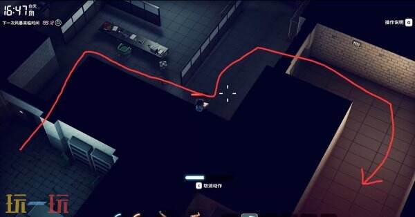 实验室地下层也有自己的撤离点,我们找到自己需要的东西后,可以从如下图标识位置撤离