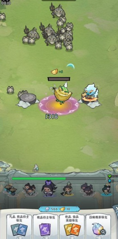 游戏每一次战局当中,可供玩家上阵的修士仅有二十名,当玩家成功击败了敌方魔物时,即可获取银子和金元宝,随后玩家可以利用银子来召唤新的修士,也可以使用金元宝,来提升召唤高级修士的概率。