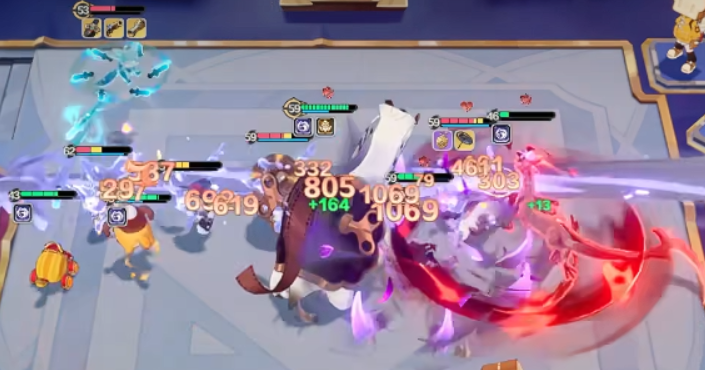 如果是新手的话,建议大家玩的就是一个比较全面的阵容,这个阵容里面可以放焰刃龙+流转仙子+咬咬+奶丁汪,这个阵容组建起来的话,其中可以达到的有3个羁绊,这3个羁绊当中一个。基础羁绊是可以给到足够的属性加成,也就是让前排的生命数值以及攻击力得到提升,就是前排放的焰刃龙,它的肉度会得到一定的提升,羁绊就是进阶类型的羁绊,这个羁绊的话,是根据目前精灵的站位来提升一定的伤害,目前是可以覆盖到全队的,得到伤害之后,还可以给到一定的增益。