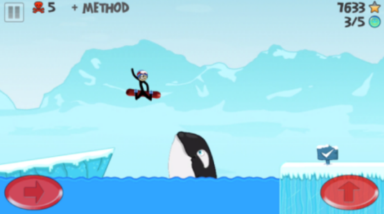 简约的火柴人却成为了此游戏中的滑雪运动员,骑着滑板参与到各种振奋人心的比赛模式中,打造自己的火柴人传奇。涵盖的场景类型特别丰富,比如高山或者跌宕起伏的房子等等,屏幕上都有相应的控制按键,比如左下角的红色按钮代表逐渐向前,而右侧的红色按钮却代表跳跃等。遇到很多障碍物是直接成功跳跃,即可突破障碍物。奔跑的越远,获得的分数越高。