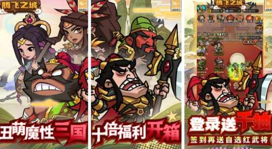 以三国历史为背景的开箱手游,融入卡牌收集、策略战斗等特色玩法,扮演三国时期的领主或者军阀招募名将发展城池最终完成统一天下的目标,其中所有三国武将设计的都非常滑稽,海量资源养成模式完全没有严重氪金的情况,即便你是平民玩家,依旧能够享受优越的三国体验。