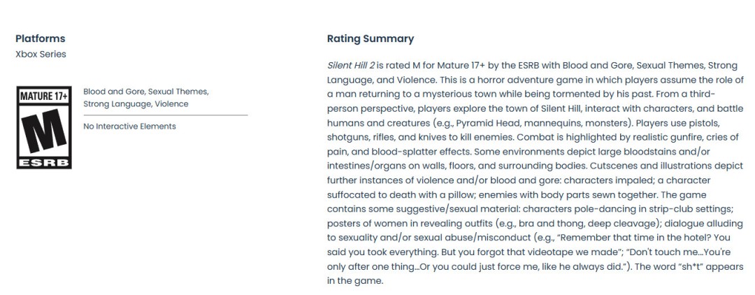 《寂静岭2:重制版》在去年10月初发售,采用虚幻5引擎,登陆了PC Steam和PS5平台。然而Konami这款游戏近期完成了ESRB分级,暗示该作即将登陆Xbox Series X|S平台。