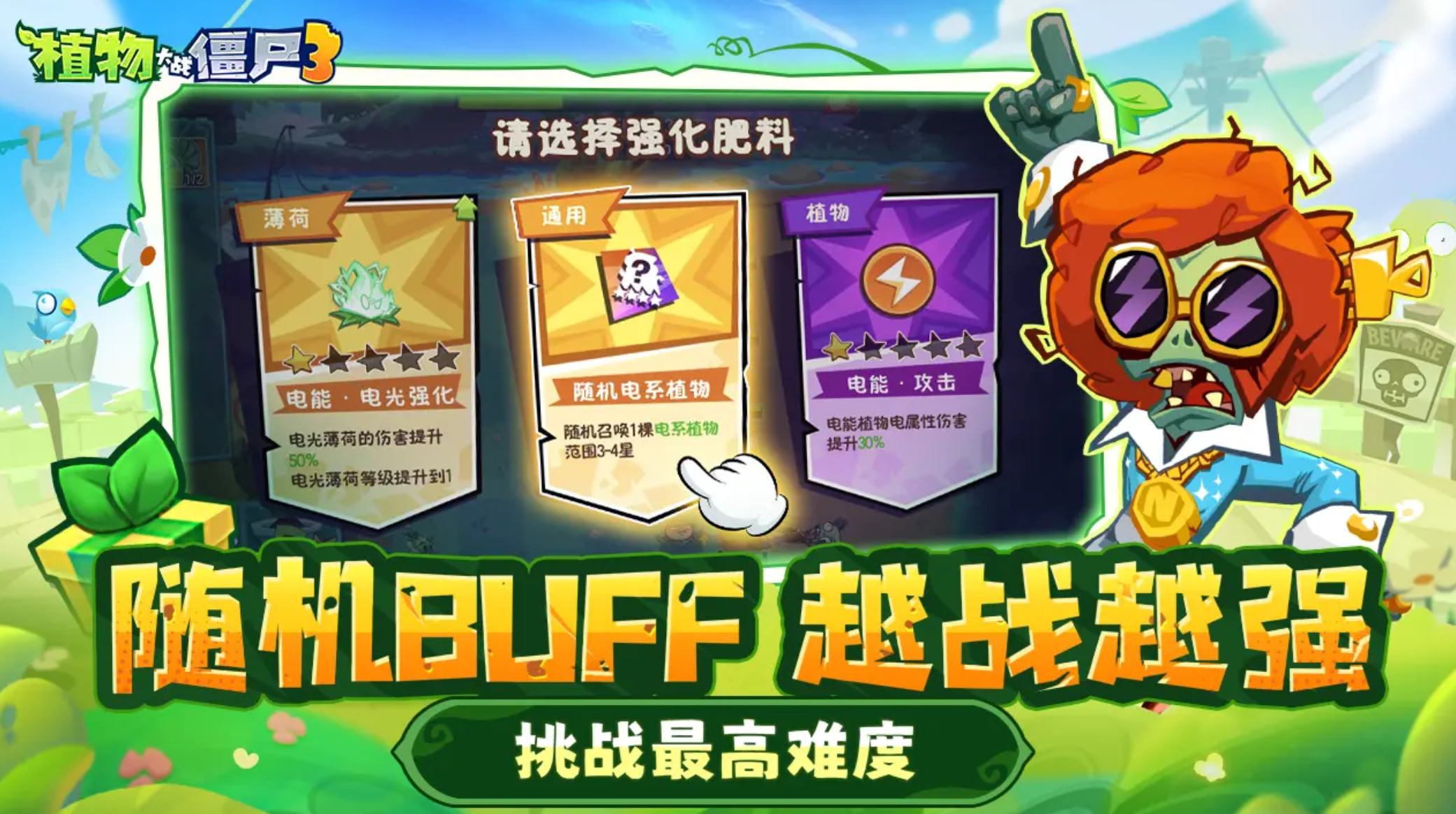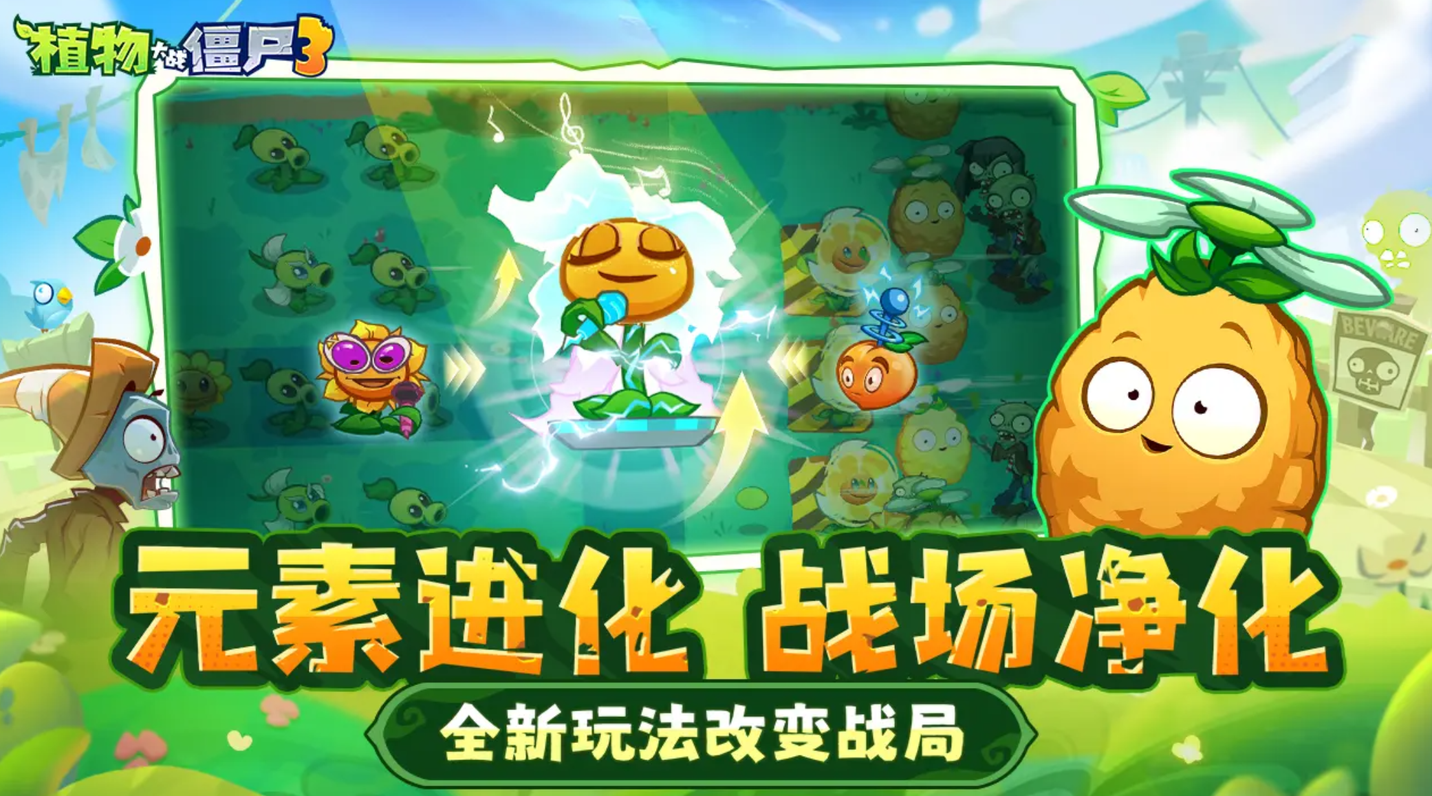 另外在游戏中还会涉及到三系共鸣,这里分别为风火电。植物可以通过元素融合就能够实现进化,而玩家在体验时发现旋风豌豆射手,其实是带有击退的作用。所以很多玩家会将植物进行净化,从而让植物的实力大幅度的增加。部分玩家会选择拖拽三叶草等等特殊的卡牌,然后到植物上也能够实现净化这时候实力将会大增,而且还会解锁新的技能。另外玩家需要注意整个游戏增强了特色的植物跟僵尸,所以说在游戏中会涉及到多元化的形象,而玩家也需要精密的布局才能够面对突发的危机。