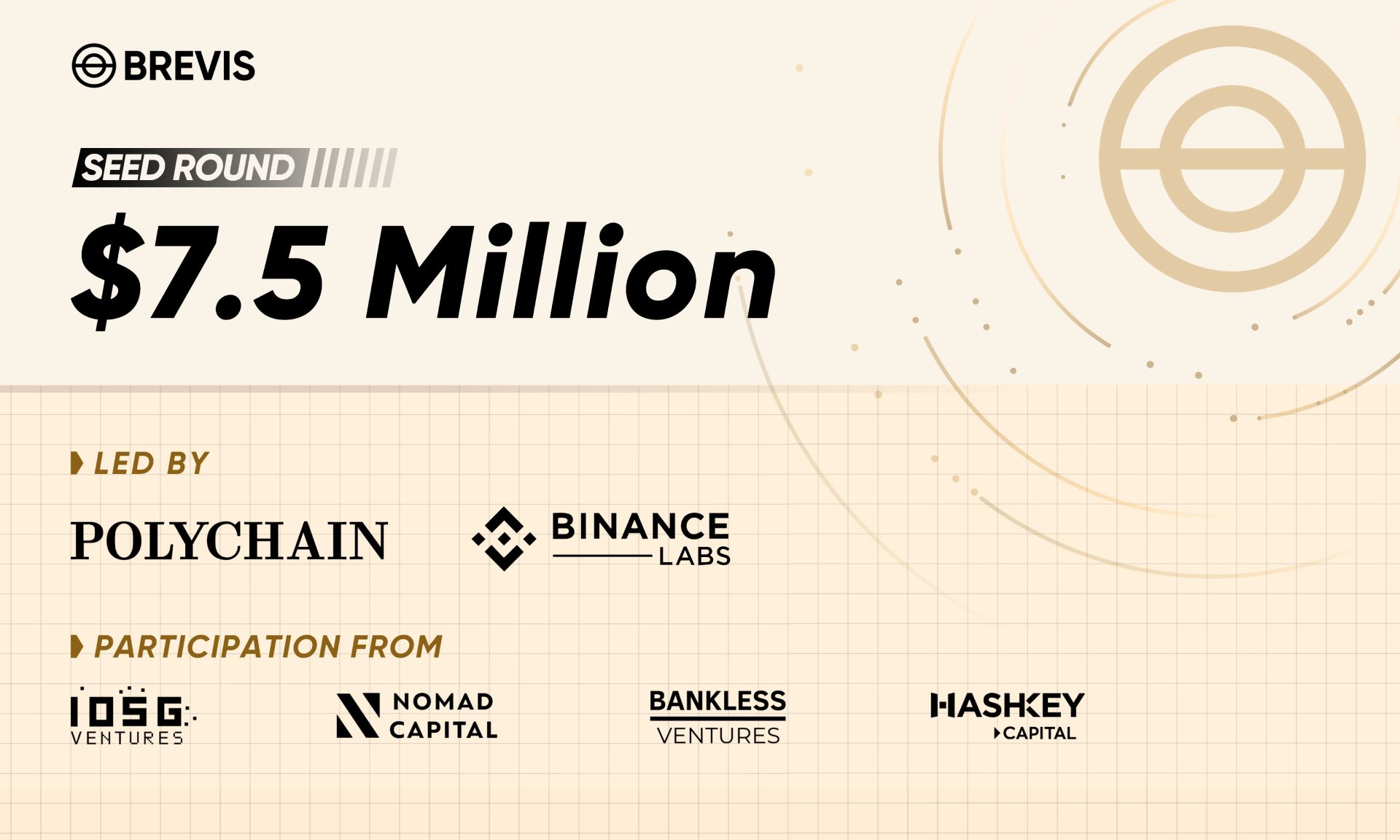 Brevis 于 2024 年 11 月 12 日宣布完成 750 万美元种子轮融资,由 Polychain Capital 和 Binance Labs 共同领投,IOSG Ventures、Nomad Capital、Bankless Ventures、HashKey Capital 等参投。