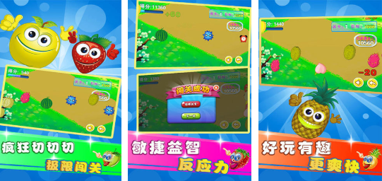 这款游戏为何要推荐孩子去玩耍?没有暴力的元素,所有的水果都会带着笑脸,所以在玩游戏时也会觉得很开心。用手指在屏幕上滑动就可以切水果,会比较考验反应的速度,还可以记住每一种水果的特征。例如菠萝有刺,草莓有籽,还能知道它们的营养。颜色的搭配是比较好看的,很养眼,所以也吸引了不少的小玩家。