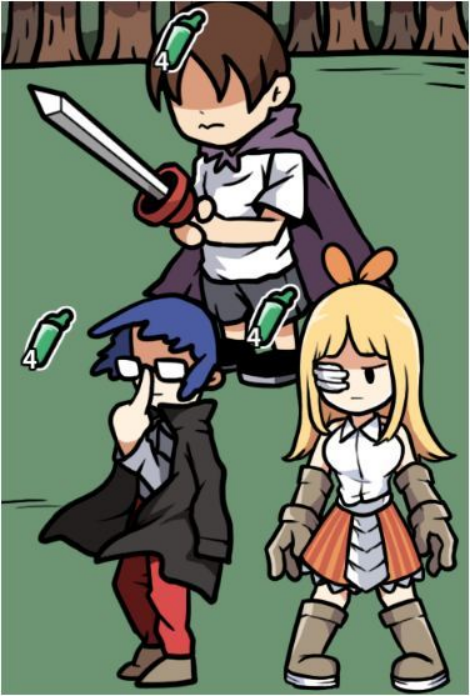 技能4 一式三份(40):使用一种道具,作用于所有友军,但效果减弱。快乐加血与毒药减弱30%,蓝蓝露减弱25%