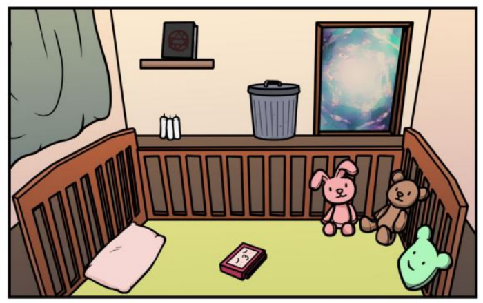 进入培育世界,养成目标是婴儿床上的卡带,书架上的书写明需要3只蜡烛,画上法阵以及献上祭品。