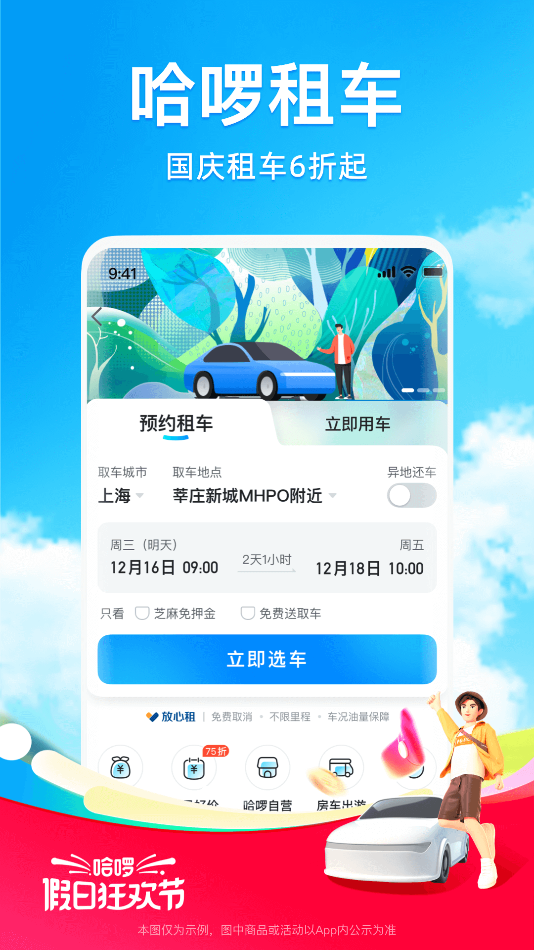 首推的是哈啰租车,这是一款以高效便捷著称的移动租车平台。用户可以通过该应用实现分钟级租车,支持短时租赁和多日长租,满足多样化的使用需求。系统会根据当前位置智能推荐附近的可用车辆,涵盖经济型轿车、SUV以及高端车型等多种选项。整个租车流程全程线上化,从查找车辆到解锁驾驶仅需几步操作,极大提升了出行效率。对于追求速度与灵活性的用户而言,哈啰租车是理想之选。