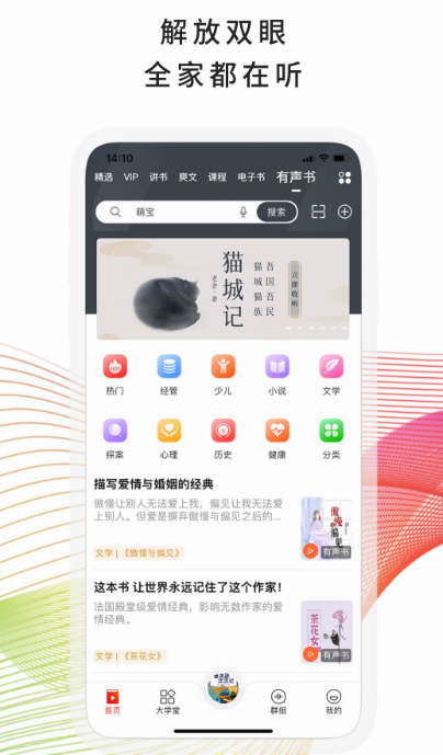 这是一款集电子书朗读与实用课程于一体的综合性音频学习工具。内容覆盖两性关系、亲子教育、健身指导等多个生活领域,帮助用户在碎片化时间中持续成长。同时,平台还特别设置了青少年专属板块,包含科普类有声书和格斗教学视频,寓教于乐,适合家庭成员共同使用。