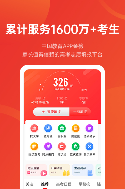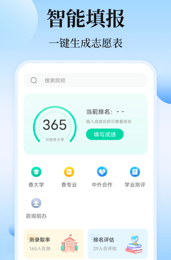 高考志愿是一款融合人工智能与大数据技术的综合性志愿指导平台。它能够根据用户的成绩区间、兴趣偏好以及长期职业发展目标,进行深度分析并推荐最优专业选项。除了关注录取难易程度和就业率外,该平台特别注重个体与专业的匹配质量,力求实现兴趣与发展的双重平衡。同时还提供模拟填报、性格测评等功能,全面提升志愿填报的准确性与合理性。