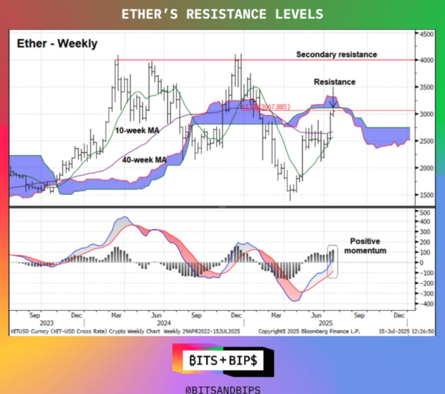 Fairlead Strategies 高级技术分析师 Will Tamplin 表示,ETH 当前面临的下一个阻力位在 3100 美元左右。因此,尽管前述技术信号看涨,但 ETH 可能会在这里短暂盘整。