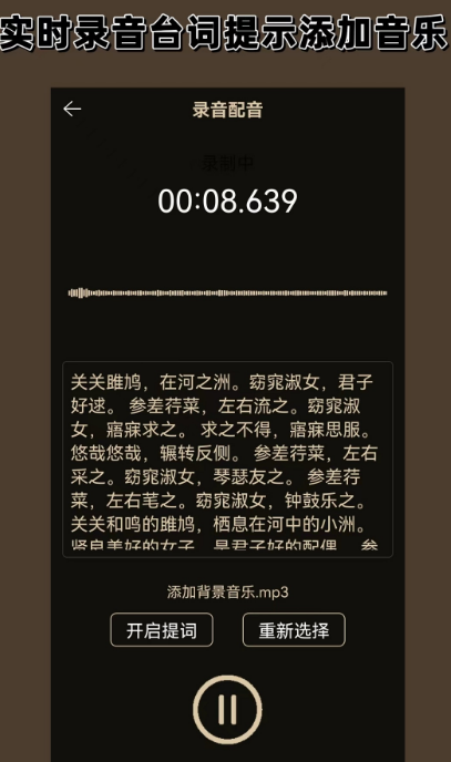 这是一款集多种实用功能于一体的录音工具,不仅支持基础录音操作,还提供提词器、音频剪辑、格式转换等附加功能。录制完成后,可进行实时台词提示,并添加背景音乐,非常适合用于视频配音或音乐制作。界面直观,操作流畅,是内容创作者的理想选择。
