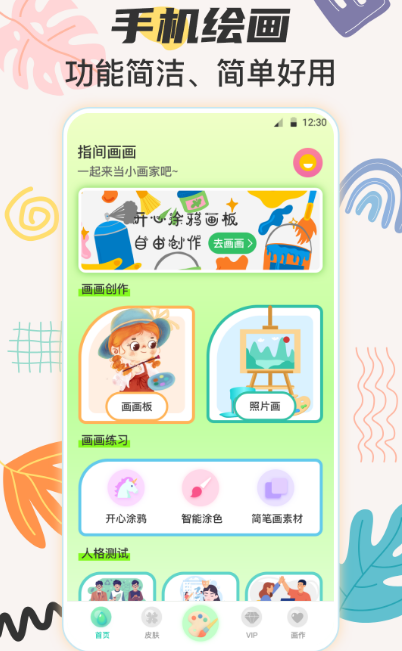 适合儿童、初学者及零基础用户的绘画工具,只要对绘画感兴趣即可上手使用。提供画板模式、照片涂鸦以及简笔画素材库等多种创作方式,满足多样化绘画需求。特别设置的“开心涂鸦”功能不仅提供引导式素材,还包含几何图形线稿,帮助用户循序渐进地完成生动图案绘制,是理想的进阶训练工具。