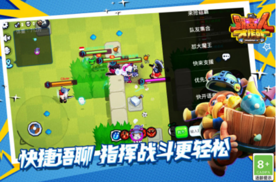 既可满足两个人玩游戏的需求,通过快捷语聊的方式,让每次战斗的时候更加轻松容易,还能邀请很多的玩家,共同的参与3v3v3这样的多人乱斗中。化身为游戏当中的各种野蛮人角色,展开的对战。除了大家在玩的时候,享受比较轻松的氛围,也是5分钟就能开启多人之间的对战。