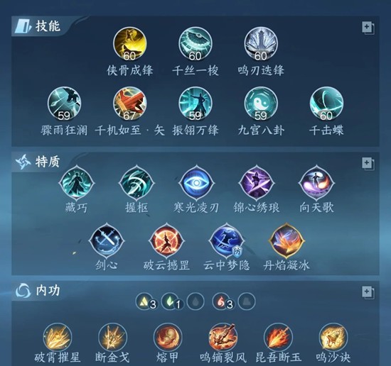 推荐优先换上新稀有内功鸣镝裂风,至于鸣沙诀和舒妙卷可以和昆吾/汲川/破戟根据词条来择优上~