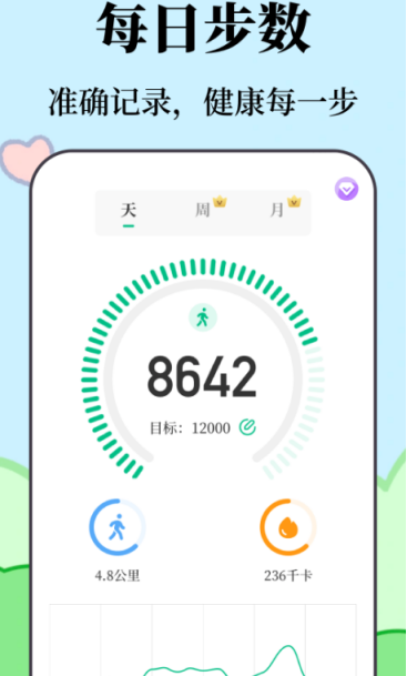 建立良好的运动习惯对各个年龄段的人都有益处。这款专为健身爱好者打造的应用程序,能够全面记录用户的日常运动表现。无论是步行还是其他形式的锻炼,系统都会精确统计步数、行程距离以及卡路里消耗情况。只需录入个人身高和体重信息,即可实时查看身体状态变化趋势,便于及时调整锻炼强度。