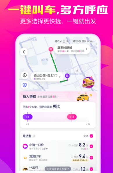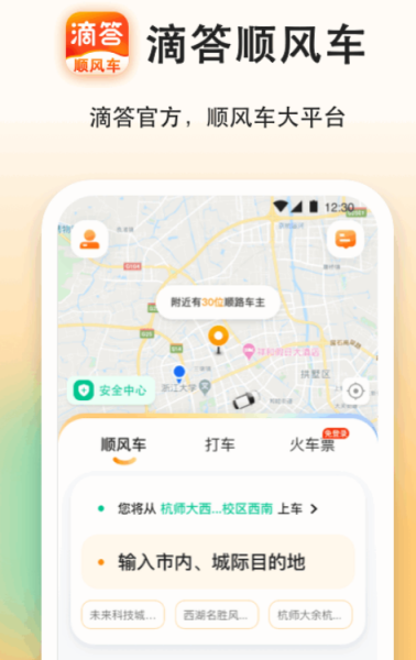 提供包括顺风车、快车、专车、出租车及代驾在内的多种出行方式。用户可根据不同场景选择合适车型,支持提前预约和一键呼叫功能,同时还提供短期包车服务,满足商务接待或家庭出游等多样化需求。