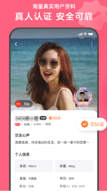 这是一款专注于同城社交的互动平台,深受年轻用户的喜爱。在这里,你有可能与现实中擦肩而过的陌生人建立联系。无论你是希望摆脱单身状态,还是想找一个能畅聊兴趣爱好的朋友,这款软件都能满足需求。所有注册用户均经过真实身份认证,确保交流环境的安全可靠。通过线上深入沟通后,还可选择线下见面约会,让感情自然升温,避免传统相亲带来的尴尬局面。