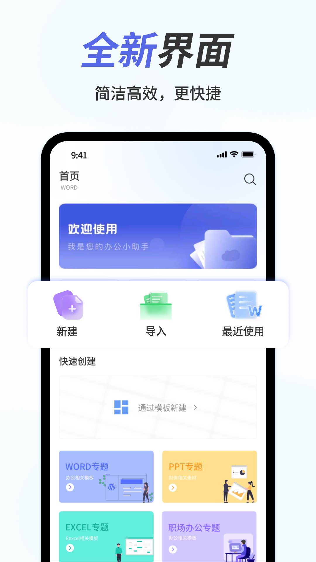 本应用支持本地存储的Word、Excel及PPT文件快速导入,便于用户随时查阅和编辑已有资料。同时提供在线新建文档功能,满足即时记录与协作需求。阅读界面简洁直观,支持内容一键分享至主流社交平台,提升沟通与协作效率。