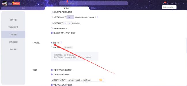 3、然后找到右侧中的"下载模式"一栏,将其中的"全速下载"勾选上就可以了。