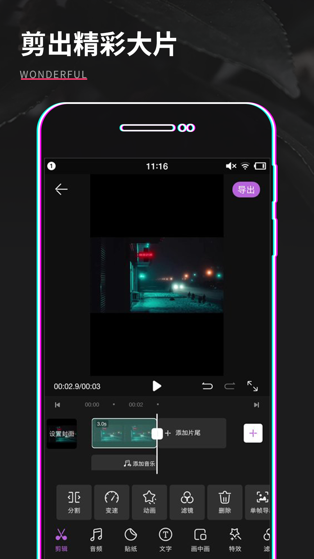 这是一款注重创意呈现的视频编辑工具,特别在文字动画方面表现出色。它提供了多种动态字幕样式,能够将静态文本转化为富有节奏感的视觉元素,使字幕与画面内容自然融合,增强观赏性。滤镜系统紧跟当下审美趋势,拥有从复古胶片到梦幻柔光等多种风格,一键应用即可提升整体画面质感,让你的作品更具艺术氛围。