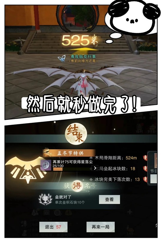 2.同样随便堆两个冰块失败,或者自主点击滑翔