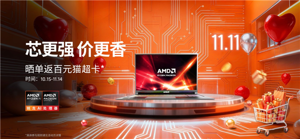 AMD联合天猫开启以“芯更强 价更香”为主题的大促活动行将进入最后倒计时,截止到11月14日,下单锐龙处理器指定系列笔记本并评论还送百元猫超卡(限量2000份,先到先得)。有购机需求的小伙伴可以先根据自身诉求看看我们的推荐机型,其中有游戏本也有轻薄本,再去主会场甄选最终机型。2025双11的最后一波冲刺,小伙伴儿们抓紧上车了!
