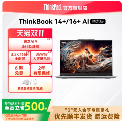 搭载锐龙7 H 255,AI 7 H 350,AI 9 365三种不同的处理器,其中这次双11主推的为最高配的规格。另外,它还有着3.2K 165Hz的全面屏视野,85Wh的大容量电池,现在购机晒单还赠拓展坞/鼠标,并享受6期免息。