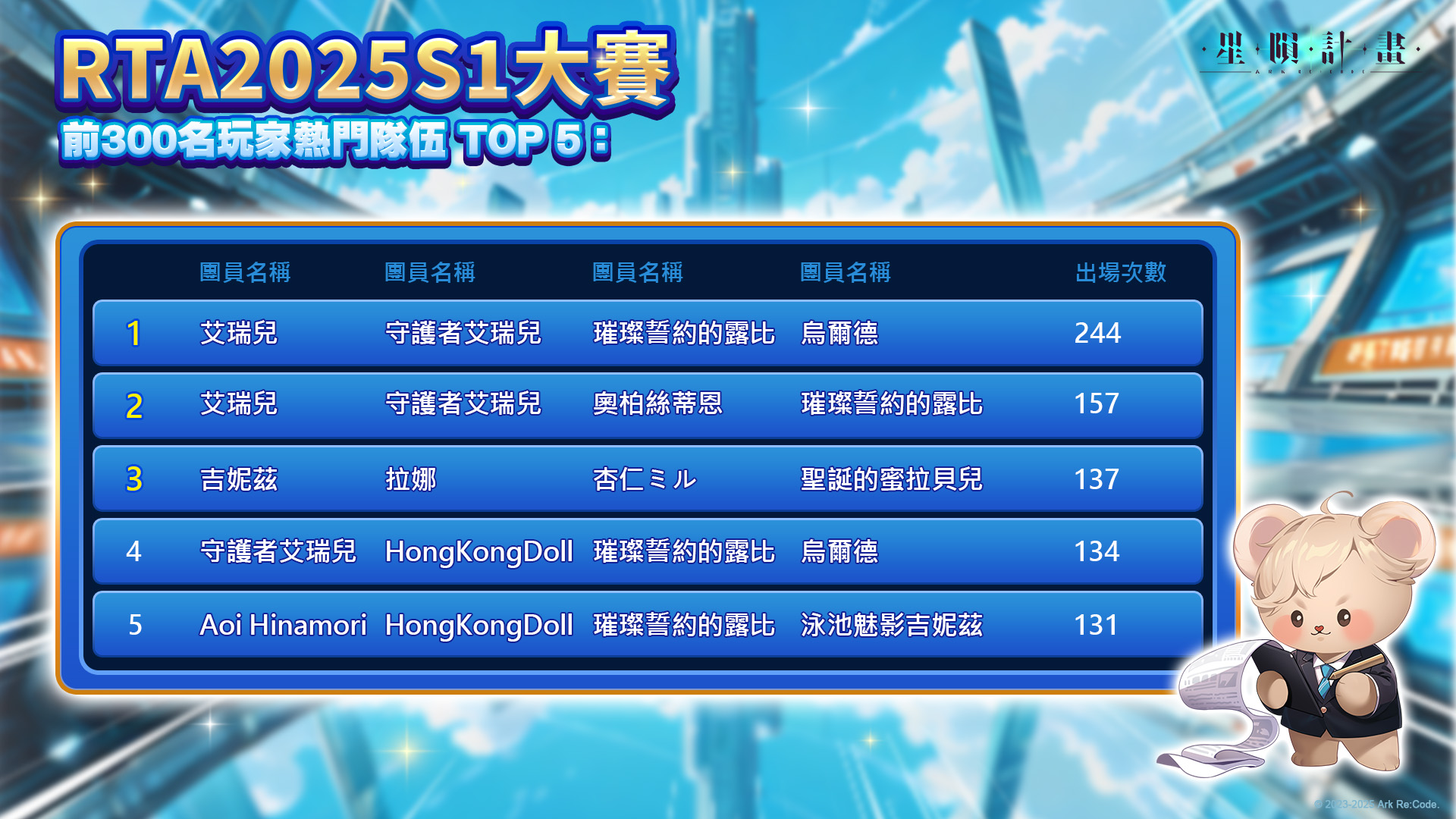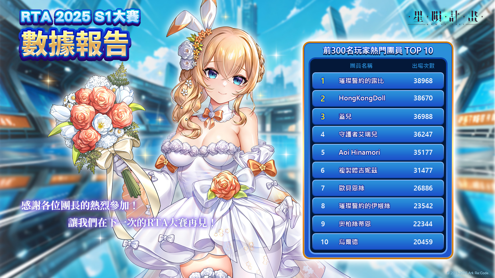 2025 S1 RTA大赛纪念奖励正式发放! 热门团员使用数据大公开!
