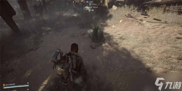 抵达“Wreckage”后,前往该兴趣点(POI)底部,寻找一台倾覆的巨大“Baron”机械残骸。就在残骸外侧,有一株不起眼的小植物,头盔正藏于其下。这个位置极易被忽略,但一旦知晓所在,只需与该处互动即可拾取头盔。