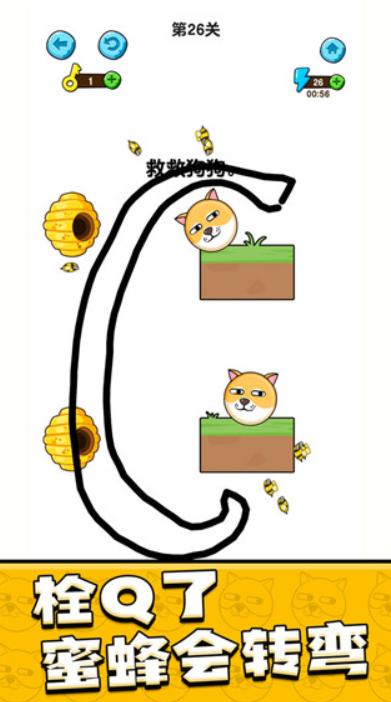 护狗的主题解谜游戏,核心玩法是靠手绘防线抵御蜜蜂侵袭,玩家需要开动脑筋完成闯关任务。这款游戏的趣味感拉满,每一局的闯关思路都没有固定框架,大家要充分调动想象力,用连贯的线条搭建防御,成功阻挡蜜蜂的进攻。魔性又诙谐的画风设计,特别适合用来放松身心,脑洞大开的关卡设定,能充分激发我们的思维潜能,每一关都能带来全新的烧脑体验。整体界面走小清新路线,视觉上给人清爽舒适的感觉。