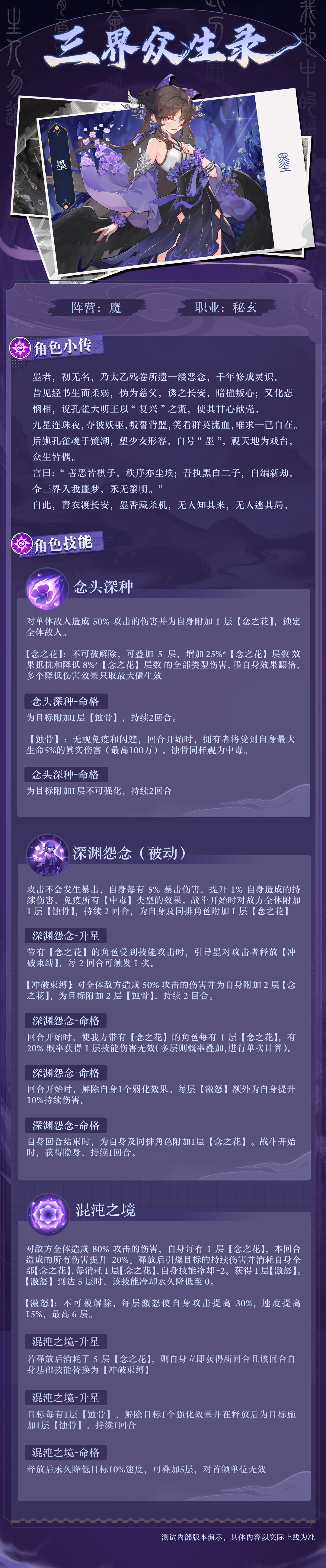 墨无染,观劫不怖,以空为纸,渡尽魔痕。11月28日,全新星辰秘玄角色「墨(魔)」登场!