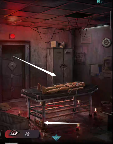 3、使用碎片把村长身上的圆盘切下来,将其安装在停尸房的柜子上,转动圆盘按照村长旁边的墙上的图案挪到正确的位置,打开柜子看见天平,根据天平旁边的文件信息,依次点开墙上耳朵眼睛嘴巴对应的数字,获得人偶