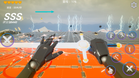 本作采用高对比度赛博朋克视觉风格,光影与霓虹元素融合紧密。角色成长路径为随机触发式,每次通关都可能解锁新技能或属性加成。除基础跑跳外,战斗模块会随场景动态介入,需在高速位移中完成格挡、闪避与反击,对操作连贯性要求较高。