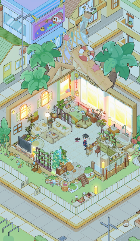 作为一款模拟经营游戏,小伙伴们可以看到,菜鸡梦想家的整体画风是比较清爽简约的,能够让人有一种轻松愉悦的放松心情。你将会在这里拥有一套属于自己的小房子,而房子中的一切装修都是由你自己说了算的,你可以在商城里面寻找到有着各种不同风格的装修和家园中可以摆放的一些小物件,并且把它们摆放在自己所喜欢的位置,不管你跟。喜欢温馨风格的房子,还是工业风格的房子,都完全没问题噢。