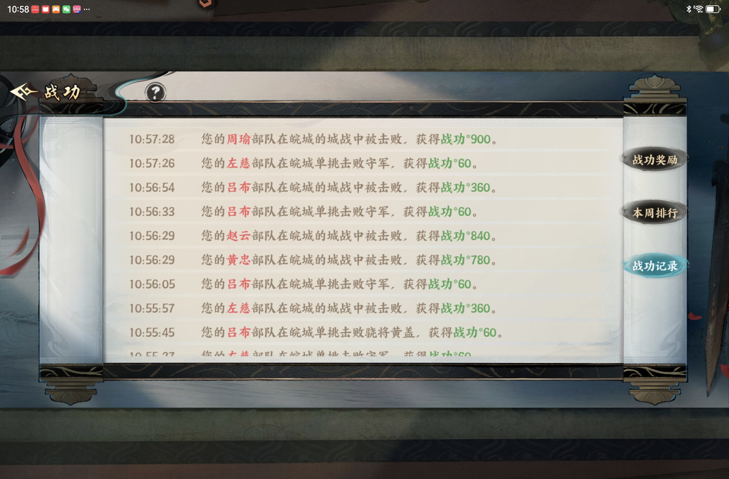2、击杀NPC部队,比如黄巾、文书、敌方势力部队等,每消灭一支部队获得60战功。