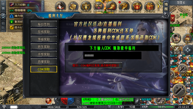 礼包码三:gxfc ( 玛法隐藏地图卷*1)