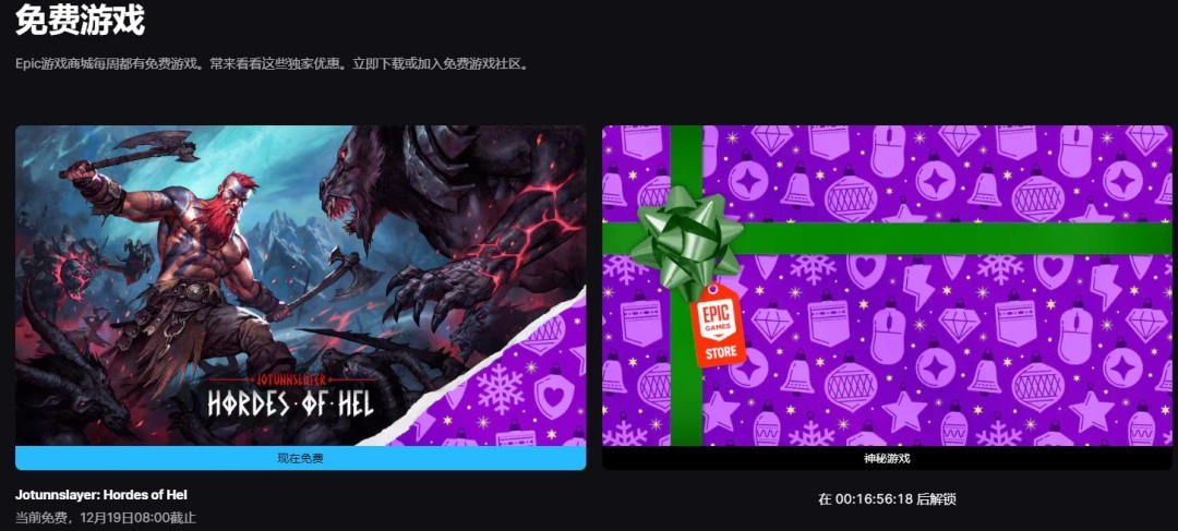 近日Epic公布了神秘游戏连送第二款,玩家将能免费领取肉鸽动作游戏《巨人杀手:暗黑之潮》。领取时间截至12月19日8:00。下一款神秘游戏将于12月20日公开。