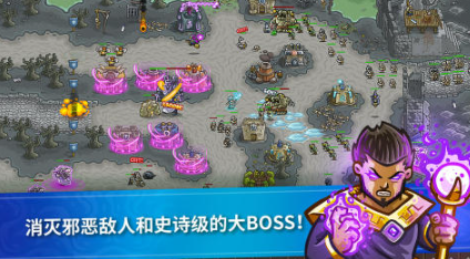 被誉为奇幻塔防品类奠基之作,构建于山脉、森林等写实地貌之上。玩家需部署箭塔、法师塔、兵营等多类型防御设施,并灵活调用援军、火雨、冰霜等主动法术协同作战。每座防御塔均设双线升级路径,技能组合丰富,战术延展性强。关卡节奏张弛有度,难度曲线平滑递进,是策略深度与可玩性高度统一的标杆级作品。