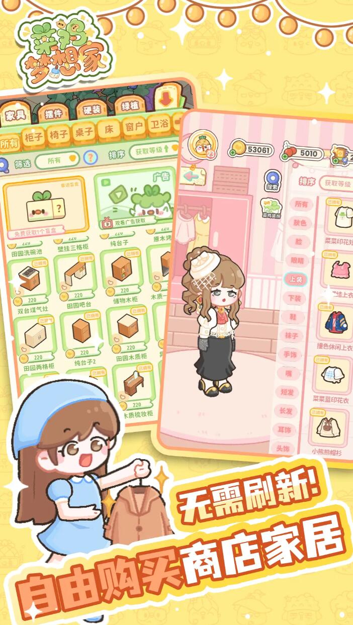游戏中最具辨识度的角色“菜鸡”,并非传统意义的宠物,而是一个拥有独立行为逻辑与情绪反馈的伙伴。它会随机触发惊喜事件,也会根据玩家装扮风格变化表情神态。玩家可为其搭配数十套主题服饰,并自定义面部微表情,使其真正成为个性延伸的一部分。与此同时,房屋改造彻底打破二维网格束缚:家具支持360度任意旋转、多角度悬浮摆放,甚至允许移除墙体与屋顶结构,实现开放式空间重构。