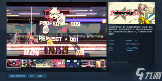 节奏冒险游戏UNBEATABLE已于12月10日正式发售,目前在Steam平台国区定价为98元。上线以来,该游戏累计收获特别好评,玩家评价整体呈现积极态势。