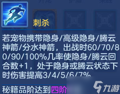 刺杀:稳定增加隐身回合数和伤害,觉醒蛰伏+驭兽刺杀是比较常见的搭配
