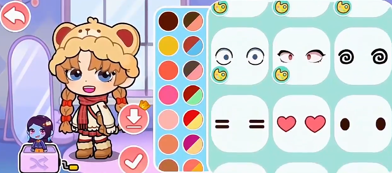 在玩法上大家可以自由打造出不同的主题空间,从咖啡店、模拟医院,到独特的美人鱼池应有尽有,并且也可以跟着场景上的不同,来转变不同的形态,更换发型、瞳色乃至妆容,参与混合咖啡、制作烘焙点心的有趣活动,和其他角色一起互动玩耍,在这里大家不仅能尽情发挥出自己的创意,并且还能拥有社交体验感。