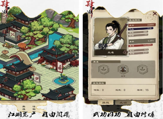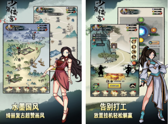 这是挂机题材,并没有复杂操作方式,反而可开启一段以浓郁的水墨国风所呈现的江湖世界里,利用简单的放置挂机方式,让自己也能有机会从一个普通的少年侠客称为英雄豪杰。主要就是涵盖丰富的副本,你将面临随机的挑战,整体的画面超赞,所有的侠客都可以自由的进行搭配。