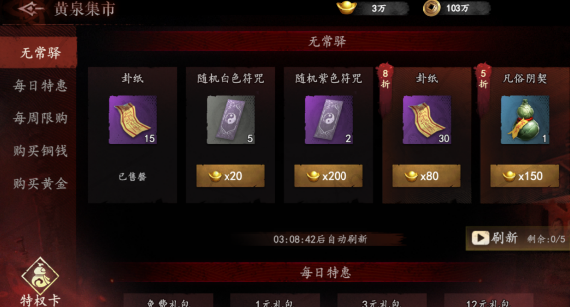 五帝钱:800元宝/份,一级鬼店点满之前可买,优先元宝周购入;