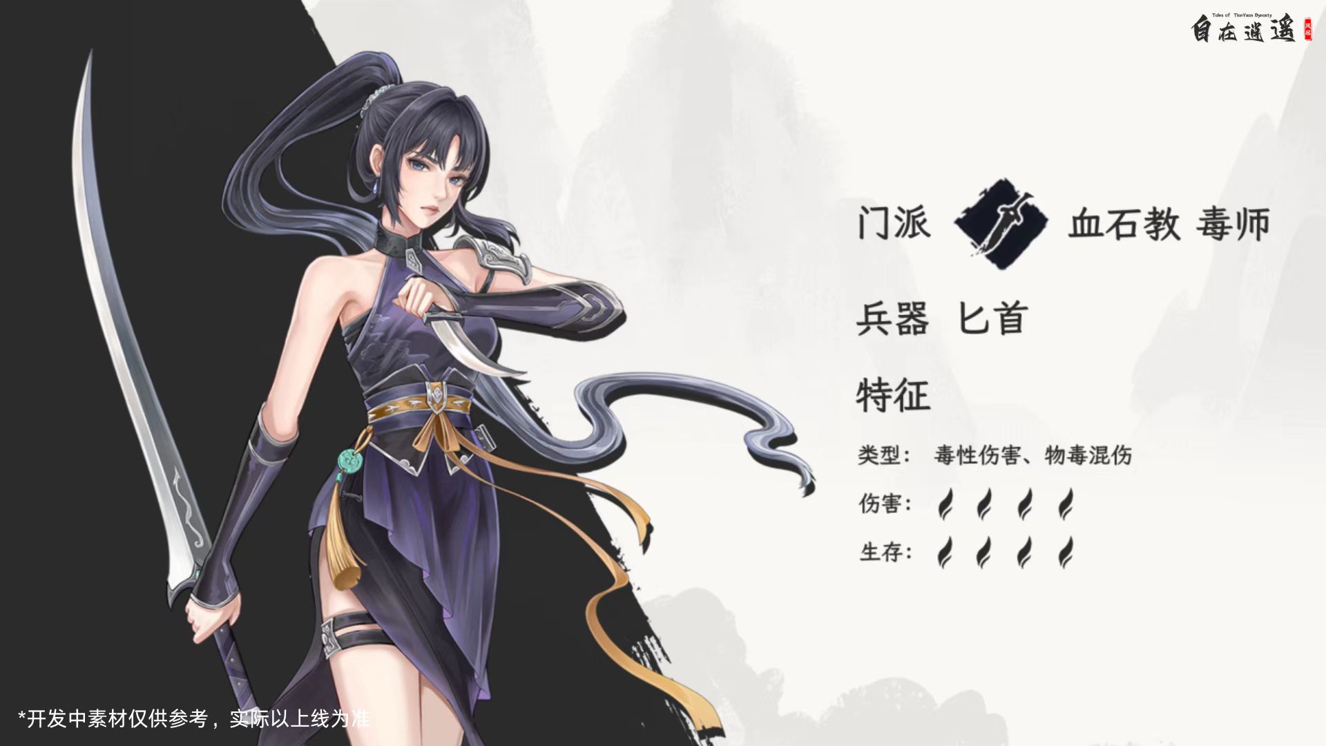 毒师融合血石教与神农派双源传承:前者精于蛊毒巫术,擅长隐秘施毒与持续侵蚀;后者承袭医道仁心,掌握解毒疗伤与状态调和之术。因此毒师以匕首为近战主器,兼具DOT(持续伤害)输出与团队辅助能力,可通过毒素叠加削弱敌方属性,亦能释放恢复类技能支援队友。其玩法强调预判布控与资源调配,策略维度丰富,适合热衷战术构筑与多目标管理的玩家。