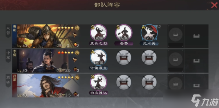 - 加点与兵种:曹彰全攻击加点,兵种优先轻骑兵(扰后+挫锐);辅助武将需控制速度,田丰需保持一速提供buff,曹操速度需高于夏侯惇保障减伤覆盖。